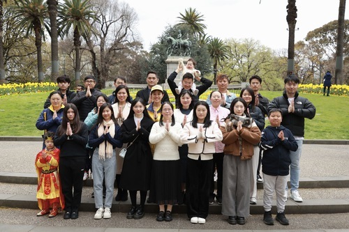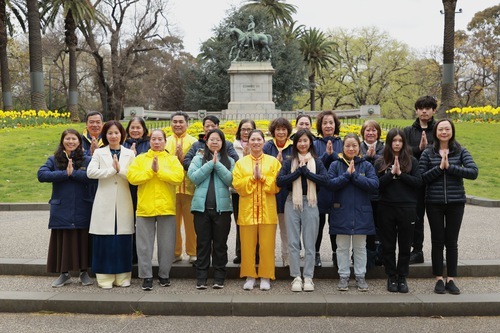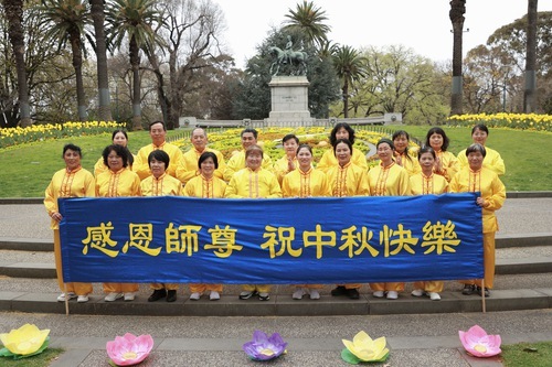 (Minghui.org) Lo scorso 6 ottobre, prima della Festa di Metà Autunno, i praticanti della Falun Dafa si sono scattati una foto di gruppo vicino all'orologio floreale nel Queen Victoria Gardens di Melbourne, esprimendo apprezzamento per il fondatore, il Maestro Li Hongzhi.