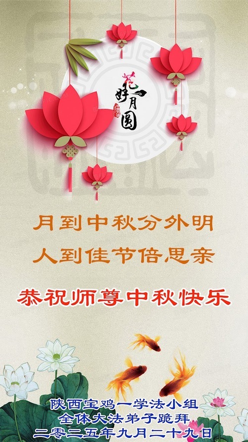 I praticanti della Falun Dafa della provincia dello Shaanxi augurano rispettosamente al Venerato Maestro un felice Festival di Metà Autunno!