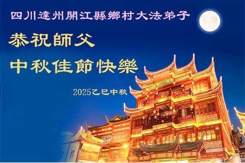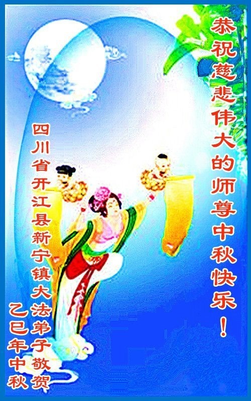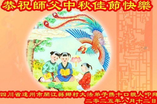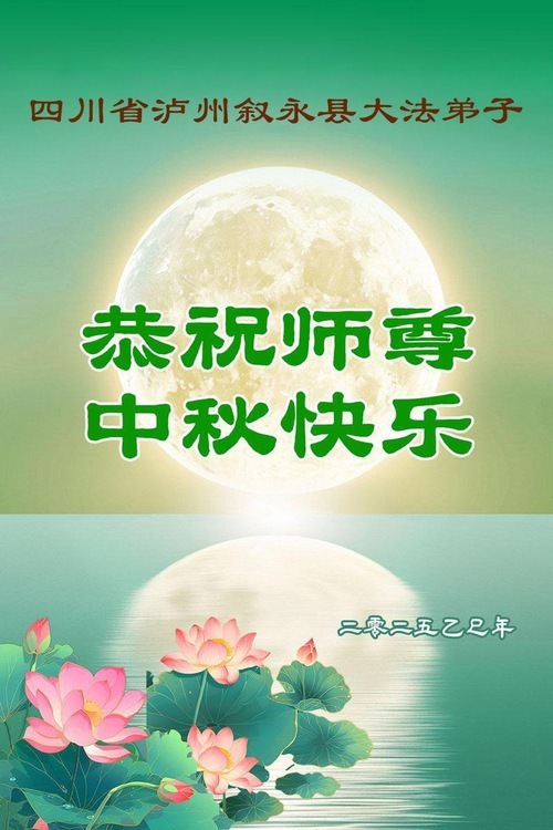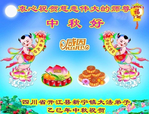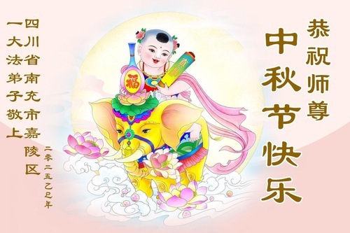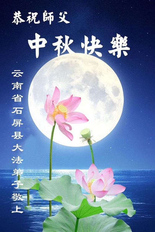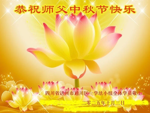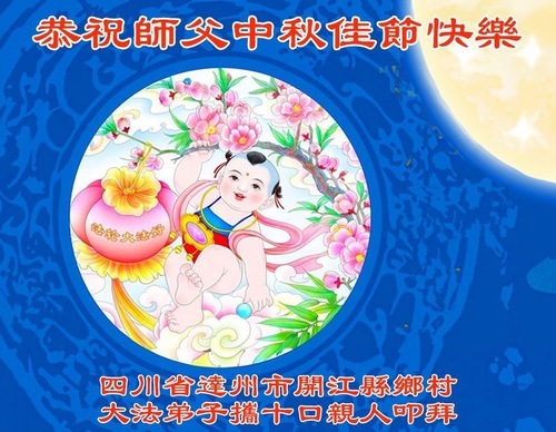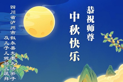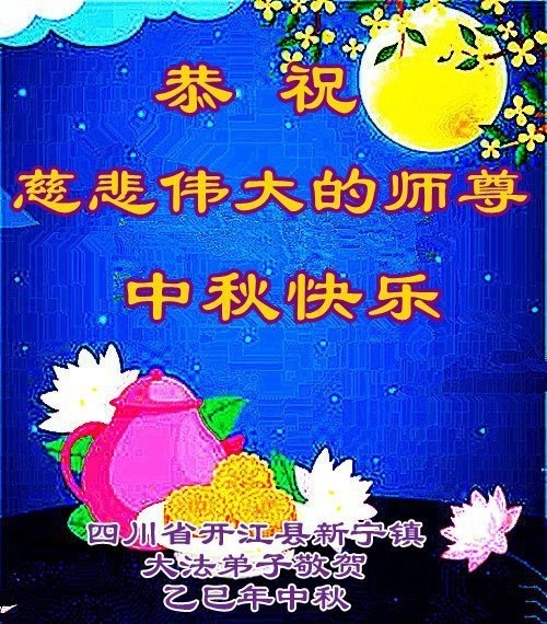 I praticanti della Falun Dafa delle città e aree di Guang’an, Dazhou, Leshan, Deyang, Luzhou, Guangyuan, Bazhong, Panzhihua, Shehong, Nanchong, Mianyang, Suining e Ziyang, nella provincia del Sichuan, augurano rispettosamente al Venerato Maestro un felice Festival di Metà Autunno!