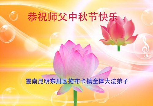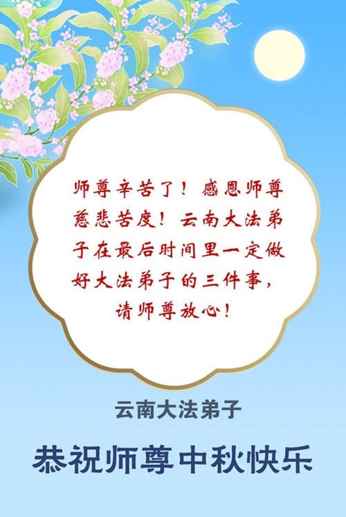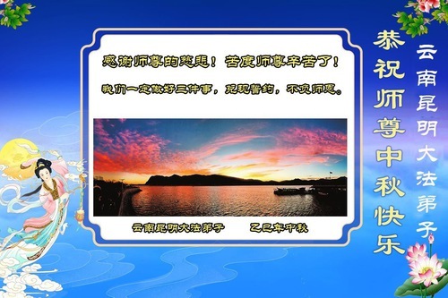 I praticanti della Falun Dafa delle città e aree di Kunming, Honghezhou, Luliang e Yuxi, nella provincia dello Yunnan, augurano rispettosamente al Venerato Maestro un felice Festival di Metà Autunno!