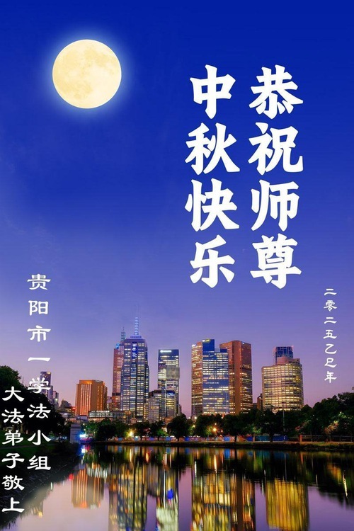 I praticanti della Falun Dafa delle città e aree di Guiyang, Liupanshui, Zunyi e Xingren, nella provincia dello Guizhou, augurano rispettosamente al Venerato Maestro un felice Festival di Metà Autunno!