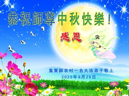 I praticanti della Falun Dafa delle città e aree di Qiqihar, Daxinganling, Shuanyashan e Ning’an, nella provincia dello Heilongjiang, augurano rispettosamente al Venerato Maestro un felice Festival di Metà Autunno!