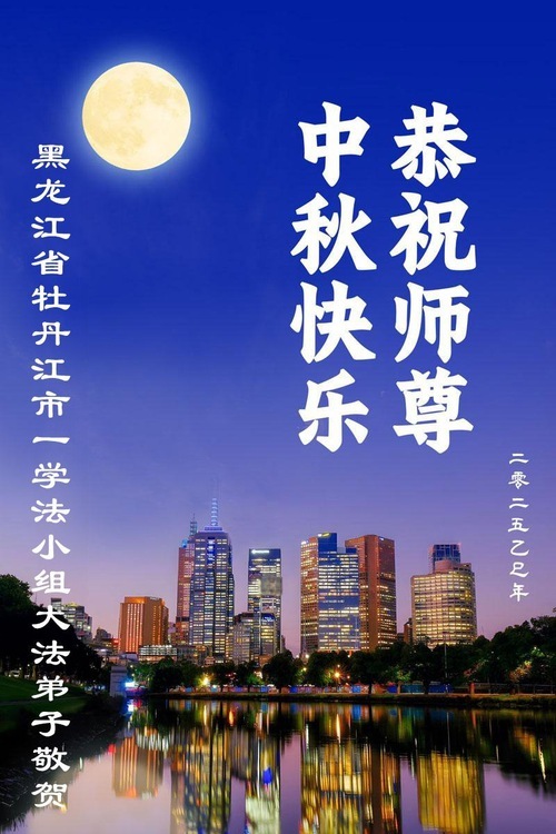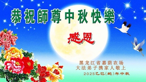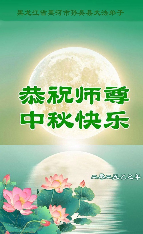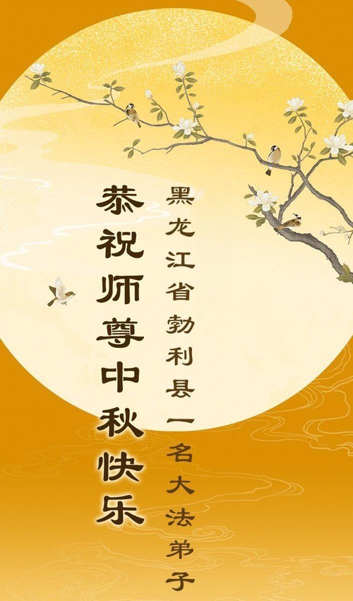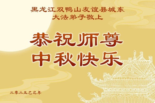 I praticanti della Falun Dafa delle città e aree di Mudanjiang, Heihe, Jiansanjiang e Qiqihar, nella provincia dello Heilongjiang, augurano rispettosamente al Venerato Maestro un felice Festival di Metà Autunno!
