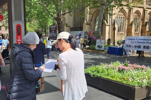 Molti passanti hanno ascoltato i discorsi, parlato con i praticanti e firmato la petizione che chiede di fermare la persecuzione del PCC