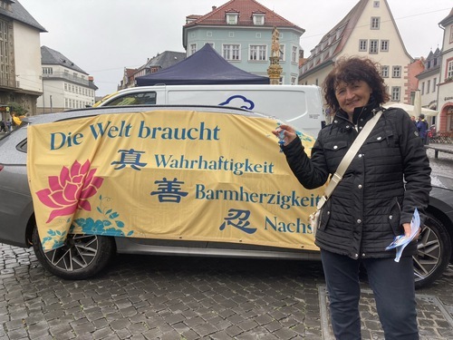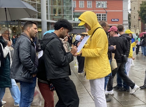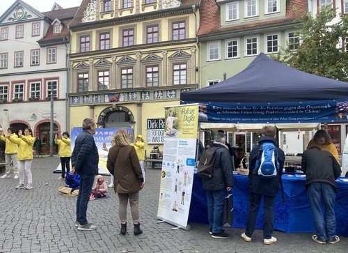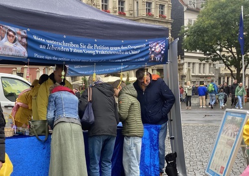 (Minghui.org) Lo scorso 4 ottobre, i praticanti della Falun Dafa provenienti da diverse parti della Germania hanno organizzato delle manifestazioni in due luoghi nel centro di Erfurt, una città dell'interno della Germania settentrionale, presentando la Falun Dafa, e informando la gente sulla persecuzione in corso da parte del Partito Comunista Cinese (PCC) nei confronti dei praticanti in Cina. L'evento ha attirato l'attenzione dei residenti locali, e molte persone hanno firmato la petizione per mostrare il loro sostegno agli sforzi dei praticanti per porre fine alla persecuzione.