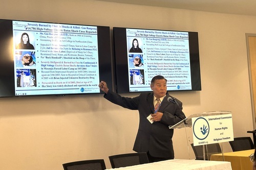 (Minghui.org) Lo scorso 10 e 11 ottobre, la Commissione Internazionale per i Diritti Umani e Libertà di Religione (ICHRRF) ha tenuto la sua convention annuale a Lorton, per discutere delle atrocità globali contro le donne. Il dottor Sen Nie, ricercatore presso il Centro per i diritti umani, e professore emerito di ingegneria presso l’Università Cattolica d'America, ha parlato della persecuzione in corso delle praticanti del Falun Gong in Cina da parte del Partito Comunista Cinese (PCC).