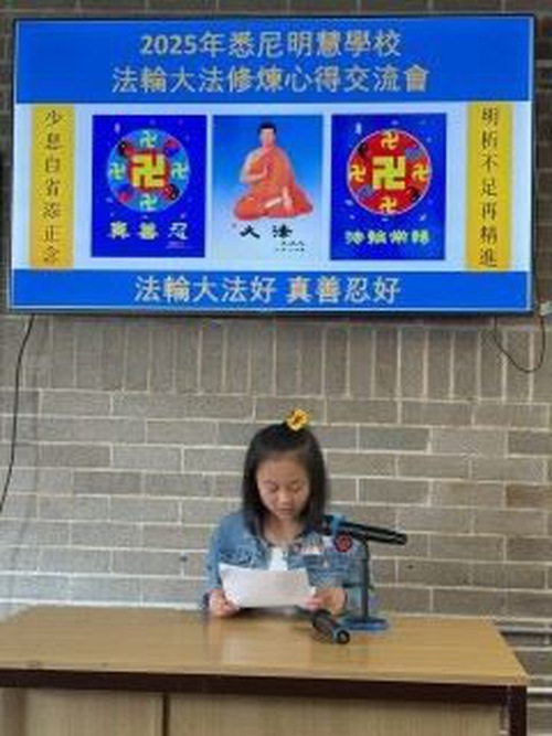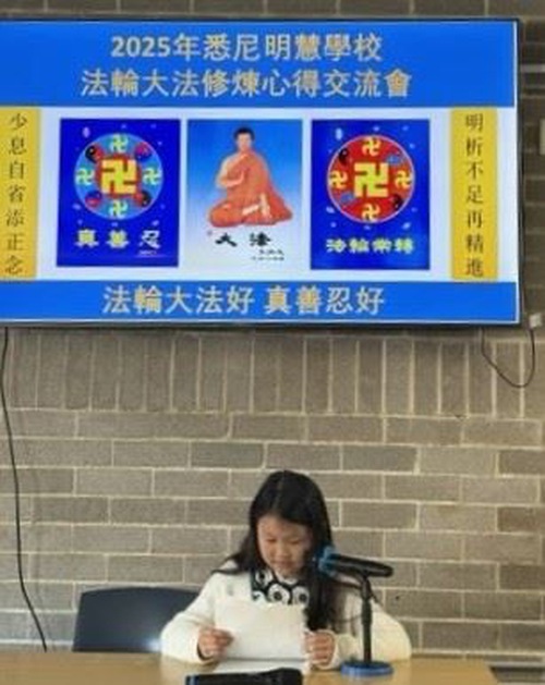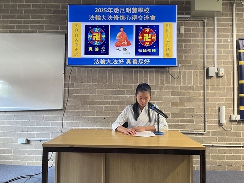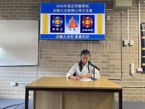 (Minghui.org) Il 28 settembre 2025 la scuola Minghui di Sydney ha organizzato una conferenza di condivisione sull’esperienze della Falun Dafa. Dodici giovani praticanti hanno letto le loro esperienze e parlato di come persistano nella coltivazione nonostante gli impegni scolastici e la vita quotidiana; promettono di eliminare gli attaccamenti e convalidare la Fa, e di assistere il Maestro nel salvare gli esseri senzienti per diventare degli autentici giovani praticanti.