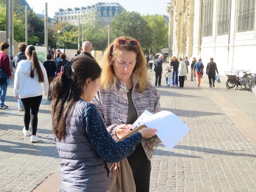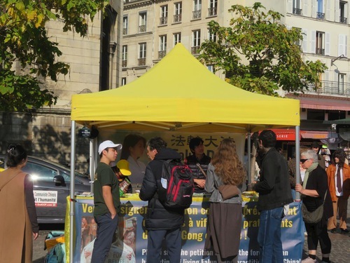 (Minghui.org) Il 7 e l'11 ottobre, i praticanti della Falun Dafa hanno sensibilizzato l'opinione pubblica sulla persecuzione da parte del Partito Comunista Cinese (PCC) e raccolto firme nei quartieri di Belleville e Châtelet a Parigi.