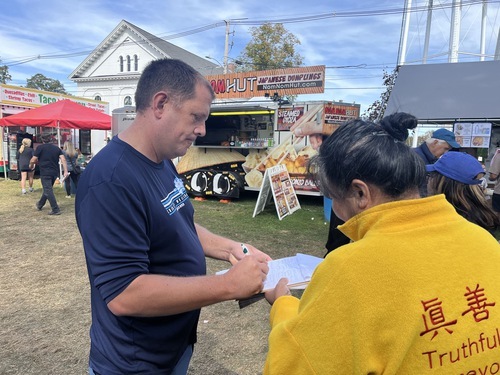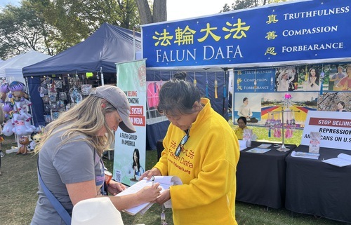 Dopo la sfilata di sabato, molte persone si sono recate allo stand della Falun Dafa per saperne di più sulla pratica.Alcune persone non erano ancora a conoscenza del fatto che il PCC preleva gli organi dai praticanti incarcerati, né sapevano che il PCC utilizza il sistema giudiziario e i media negli Stati Uniti e in altri paesi nel tentativo di promuovere la persecuzione del Falun Gong e di Shen Yun Performing Arts, una compagnia di danza classica cinese che mette in mostra la cultura tradizionale cinese prima del comunismo. Dopo averne sentito parlare ed esserne venute a conoscenza, la maggior parte delle persone ha firmato una petizione a sostegno della Legge sulla protezione del Falun Gong, una legge del Congresso degli Stati Uniti che imporrebbe sanzioni agli individui coinvolti nel prelievo forzato di organi da parte del PCC.
