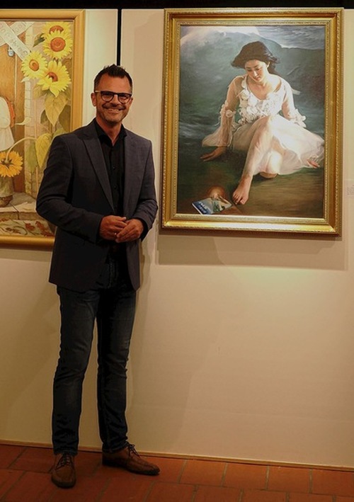 Alla fine, il sindaco si è fermato davanti alla sua opera preferita, “Chi sono io?”, si è fatto fotografare, e ha sorriso dichiarando di trovare il dipinto semplicemente “bellissimo”, sia dal punto di vista artistico che spirituale.