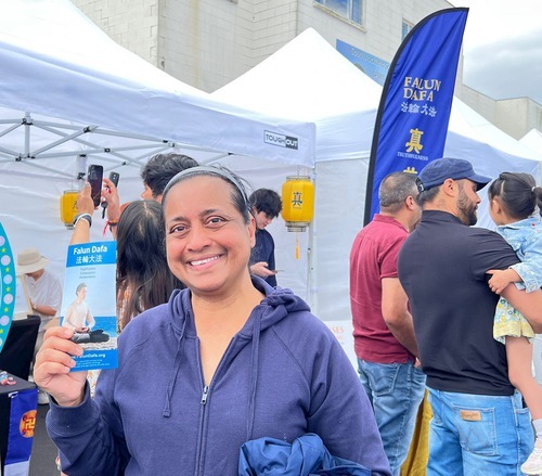L'impiegata di banca Shereen Mohammad ha visitato lo stand della Falun Dafa e si è detta colpita dalla serenità e dalla gentilezza dei praticanti.