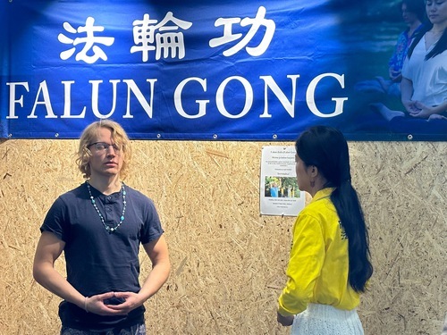 Una signora anziana in compagnia con un'amica ha chiesto chi avesse pagato lo stand, ma un praticante le ha spiegato: “Abbiamo tutti un lavoro, e contribuiamo volontariamente con ciò che è necessario per sostenere l'evento”. Il praticante le ha poi raccontato della persecuzione della Falun Dafa da parte del PCC, che ha causato a molte persone la perdita del lavoro e della famiglia. La donna ha detto con sincerità: “Vi ammiro tantissimo”.