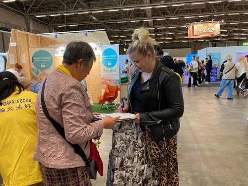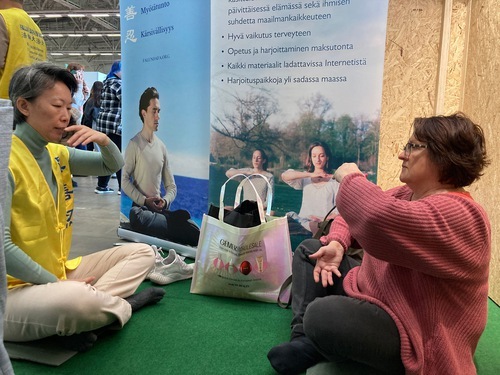 (Minghui.org) Dallo scorso 17 al 19 ottobre, si è tenuta la fiera della salute “I Love Me”, presso il Centro Espositivo e Congressuale di Helsinki in Finlandia, che ha presentato le ultime tendenze in materia di bellezza, moda e benessere. I praticanti della Falun Dafa, invitati a partecipare, hanno parlato ai visitatori dei benefici della pratica, e di come il Partito Comunista Cinese (PCC) persegua questa disciplina spirituale. Molte persone si sono fermate al loro stand, e alcune hanno imparato gli esercizi durante l'evento.