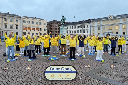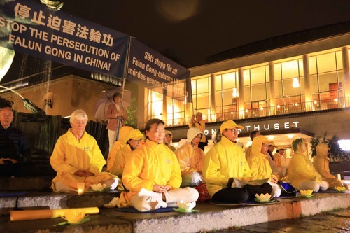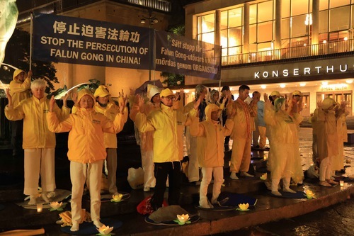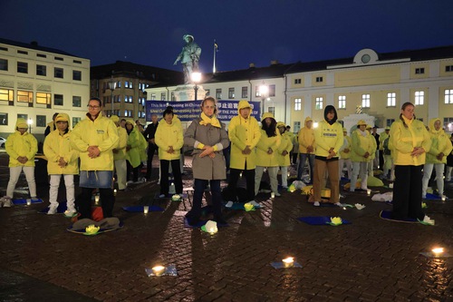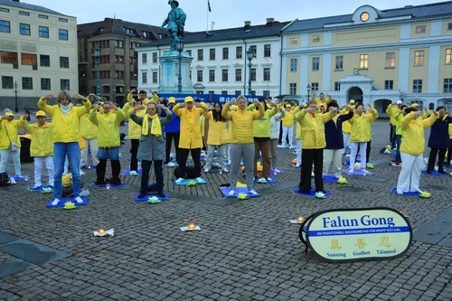 Il 19 settembre, i praticanti della Falun Dafa hanno tenuto una veglia a lume di candela a Gustav Adolfs Torg a Göteborg e hanno dimostrato gli esercizi