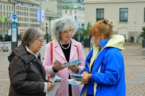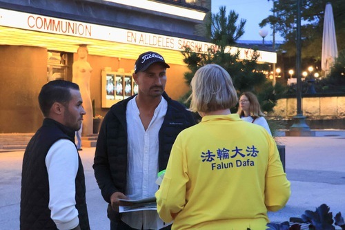 Le persone che uscivano dalla sala concerti sul lato ovest di piazza Götaplatsen volevano saperne di più sulla Falun Dafa