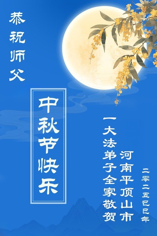 I praticanti della Falun Dafa della provincia dell’Henan augurano rispettosamente al Maestro Li Hongzhi una felice Festa di Metà Autunno (19 auguri)