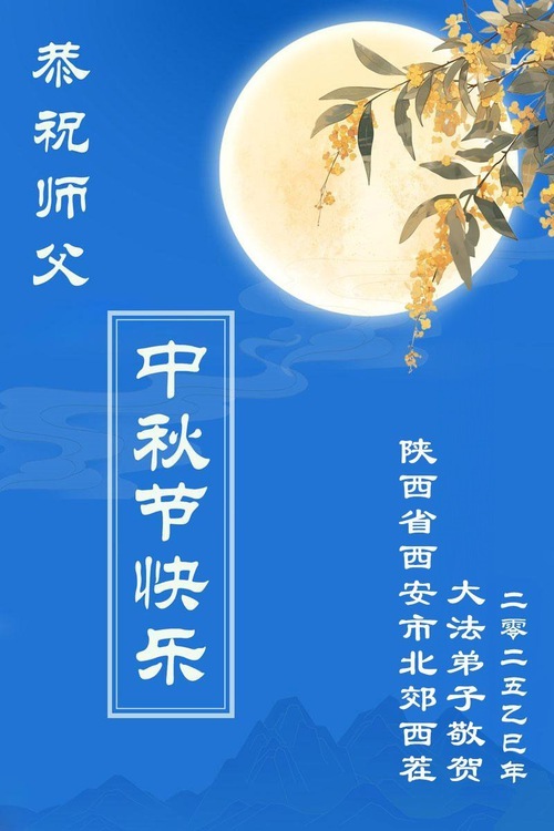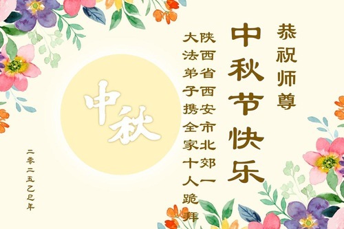 I praticanti della Falun Dafa della città di Xi’an augurano rispettosamente al Maestro Li Hongzhi una felice Festa di Metà Autunno (18 auguri)