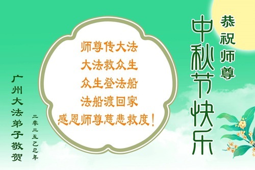 I praticanti della Falun Dafa della città di Guangzhou augurano rispettosamente al Maestro Li Hongzhi una felice Festa di Metà Autunno (18 auguri)