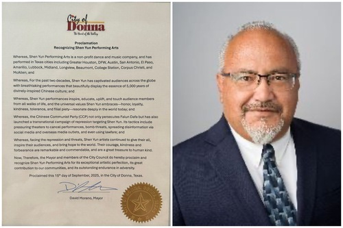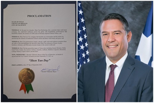 Ricardo Villarreal, sindaco di Palmview, ha proclamato lo scorso 15 settembre "Giornata di Shen Yun" in città. Lo stesso giorno, David Moreno, sindaco di Donna, ha emesso un proclama per Shen Yun, riconoscendone la straordinaria resilienza di fronte alle avversità, e il grande contributo alla comunità attraverso la sua eccezionale e raffinata arte.