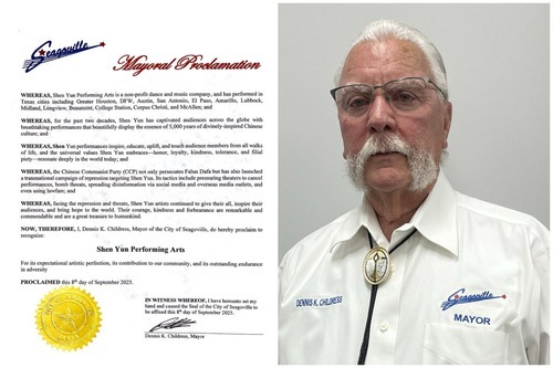 L’8 settembre, Dennis K. Childress, sindaco della città di Seagoville, ha emesso un proclama per Shen Yun