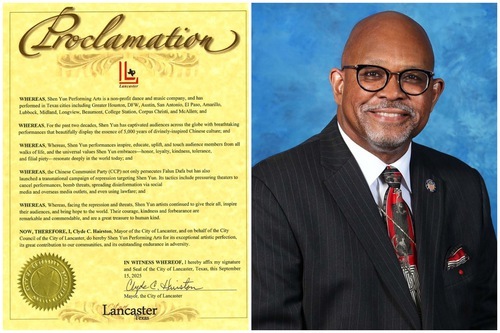Clyde C. Hairston, sindaco della città di Lancaster, ha emesso un proclama per Shen Yun