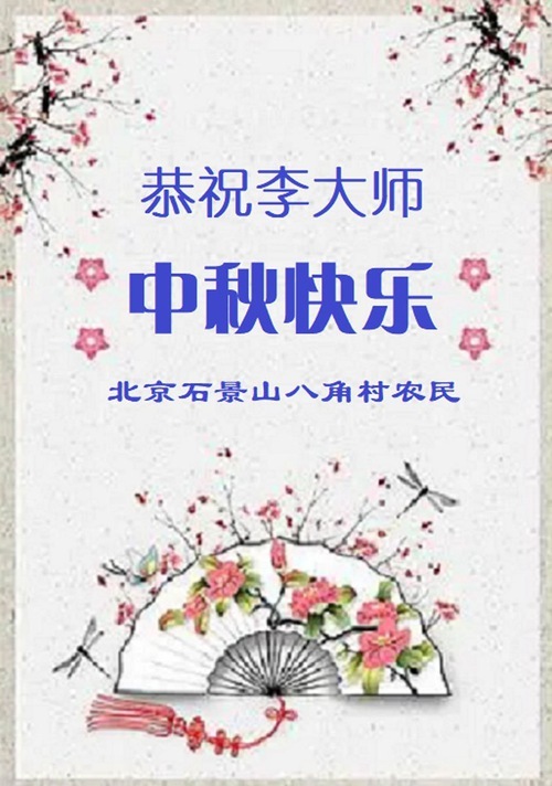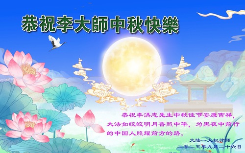 (Minghui.org) Con l'avvicinarsi della Festa di Metà Autunno (nota anche come Festa della Luna), le persone in tutta la Cina sono grate per gli immensi benefici fisici e mentali che hanno sperimentato dopo aver iniziato a praticare la Falun Dafa o aver detto: "La Falun Dafa è buona", condividono i principi di Verità, Compassione e Tolleranza della Falun Dafa, desiderano una vita migliore e sperano che le brutalità del Partito Comunista Cinese (PCC) finiscano presto. Presentiamo alcuni degli auguri al Maestro Li, fondatore della Falun Dafa, inviati al sito Minghui.
