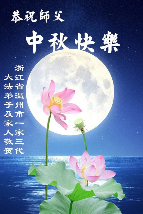 I praticanti della Falun Dafa della provincia del Zhejiang augurano rispettosamente al Maestro Li Hongzhi una felice Festa di Metà Autunno (20 auguri)