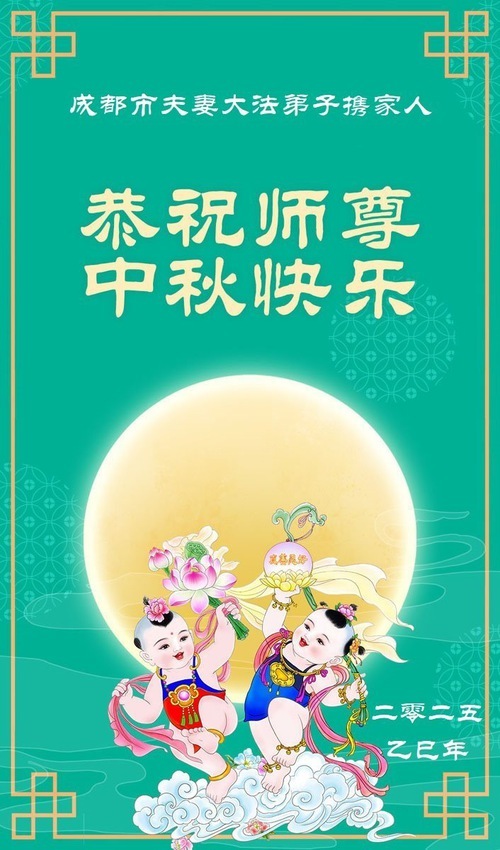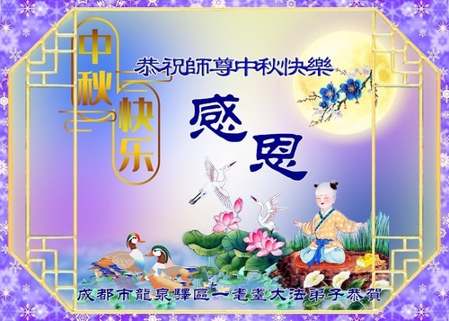 I praticanti della Falun Dafa della città di Chengdu augurano rispettosamente al Maestro Li Hongzhi una felice Festa di Metà Autunno (20 auguri)