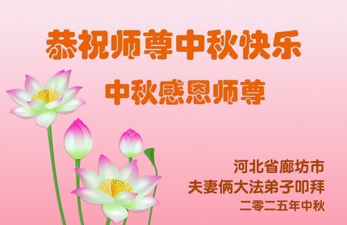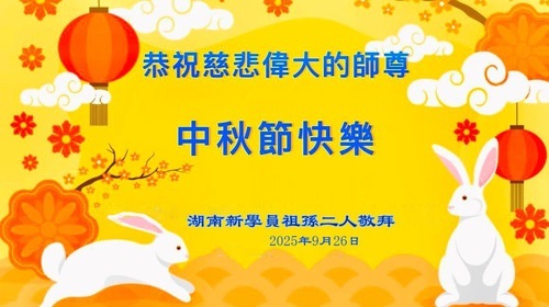 (Minghui.org) Nonostante la persecuzione verso i praticanti della Falun Dafa in Cina continui, le persone continuano a praticarla. In occasione della festa di metà autunno del 2025, i nuovi praticanti provenienti da tutta la Cina inviano i loro migliori auguri al Maestro Li Hongzhi, fondatore della Falun Dafa, per ringraziarlo di aver insegnato la pratica al mondo e di aver portato loro speranza.
