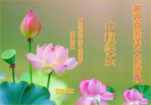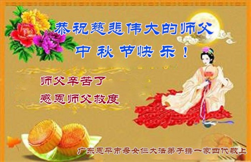 I praticanti della città di Ningbo, nella provincia dello Zhejiang, hanno ringraziato lo staff di Minghui per aver ricevuto, elaborato e pubblicato i loro saluti. "Non importa quanto lungo e difficile sia il cammino per praticare e convalidare la Dafa, ci assimileremo pienamente alla Dafa, rimarremo diligenti e faremo tutto bene. Grazie, Maestro Li! Vi auguriamo una felice Festa di Metà Autunno!"