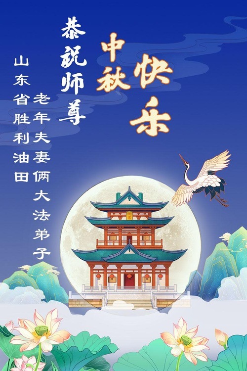 I praticanti della città di Dongying e del giacimento petrolifero di Shengli, nella provincia dello Shandong, augurano al Maestro una felice Festa di Metà Autunno. Il saluto recita: “Con l'arrivo della Festa di Metà Autunno, noi discepoli siamo grati per l'infinita compassione del Maestro. Seguiremo i suoi insegnamenti e faremo tesoro di questa preziosa opportunità. Procederemo con pensieri retti e percorreremo con coraggio e diligenza l'ultima tappa del viaggio”.