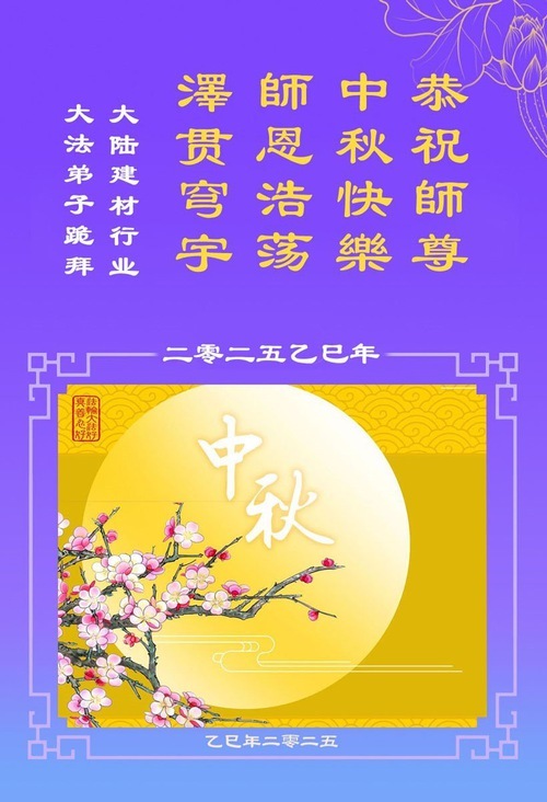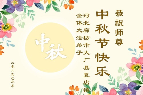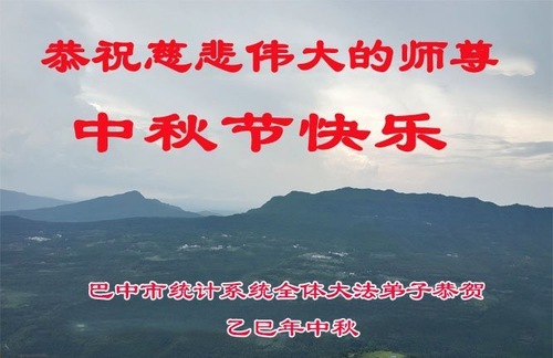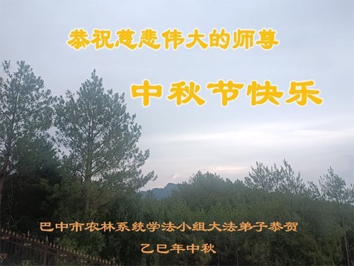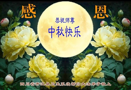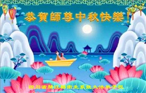 I praticanti del sistema agricolo e forestale della città di Bazhong, provincia del Sichuan, augurano al Maestro una felice Festa di Metà Autunno. Il loro saluto recita: “L'umanità ha fatto molta strada fino ad oggi. Siamo fortunati ad aver incontrato la Falun Dafa e ad essere diventati discepoli della Dafa scelti dal Maestro. Siamo grati per la Sua protezione compassionevole, che ci ha dato questa opportunità unica di coltivare. Siamo grati per l'immensa perseveranza del Maestro, che ha dato agli esseri senzienti la speranza della salvezza. Siamo grati per averci trasmesso la Falun Dafa, permettendoci di diventare nuovi esseri. Non ci sono parole per esprimere la nostra gratitudine al Maestro. Migliaia di parole possono essere riassunte in una sola frase: Grazie, compassionevole e grande Maestro!”.