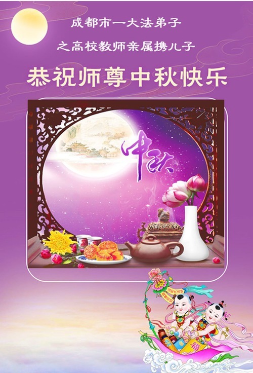 (Minghui.org) Per celebrare la Festa di metà autunno (nota anche come Festa della Luna), i praticanti della Falun Dafa inviano i loro migliori auguri di buone feste al Maestro Li Hongzhi, il fondatore della Falun Dafa.