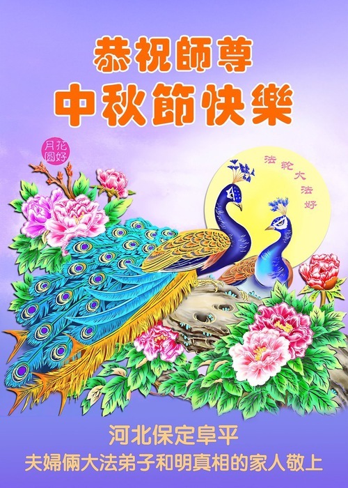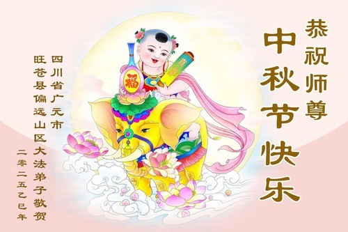 (Minghui.org) In occasione della Festa di Metà Autunno (6 ottobre), i sostenitori della Falun Dafa in tutta la Cina inviano i loro più sentiti saluti al Maestro Li Hongzhi, il fondatore della pratica, augurandogli buona festa.