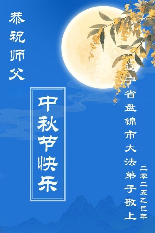 I praticanti della Falun Dafa della città di Panjin, nella provincia del Liaoning augurano al Venerato Maestro una felice Festa di Metà Autunno!