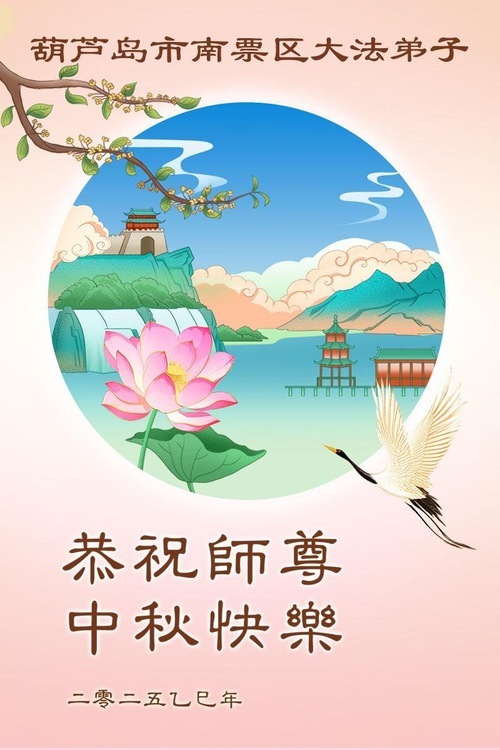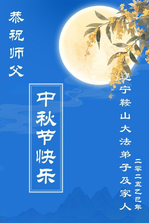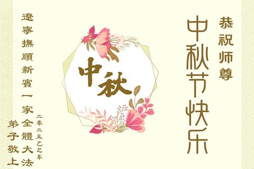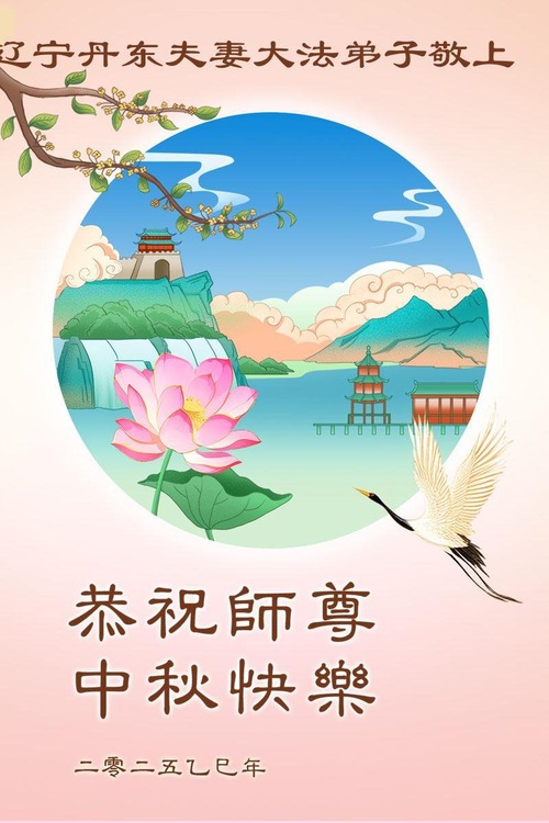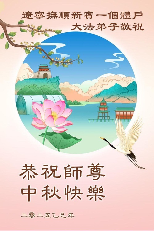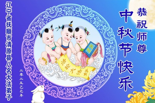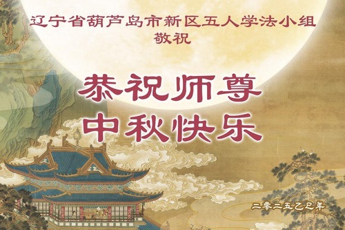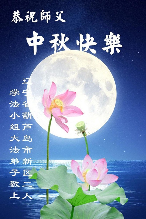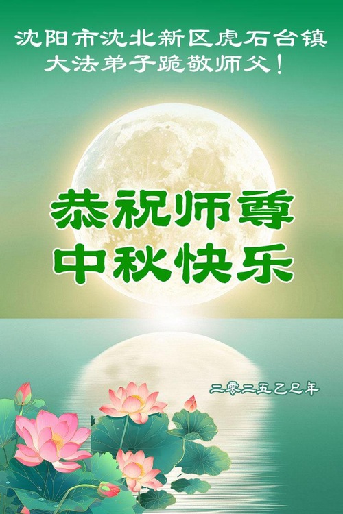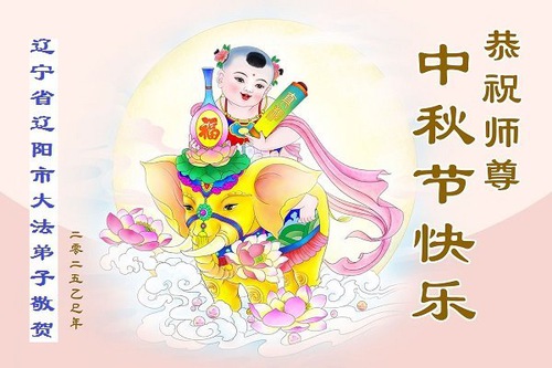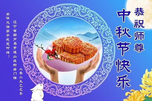 I praticanti della Falun Dafa delle città di Fushun, Liaoyang, Dandong e Anshan, nella provincia del Liaoning augurano al Venerato Maestro una felice Festa di Metà Autunno!