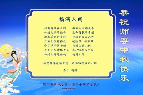 I praticanti della Falun Dafa della città di Shenyang nella provincia del Liaoning augurano al Venerato Maestro una felice Festa di Metà Autunno!