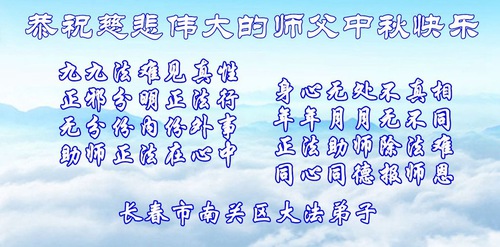 I praticanti della Falun Dafa della città di Changchun augurano rispettosamente al Maestro Li Hongzhi un felice Festival di metà autunno (101 auguri)