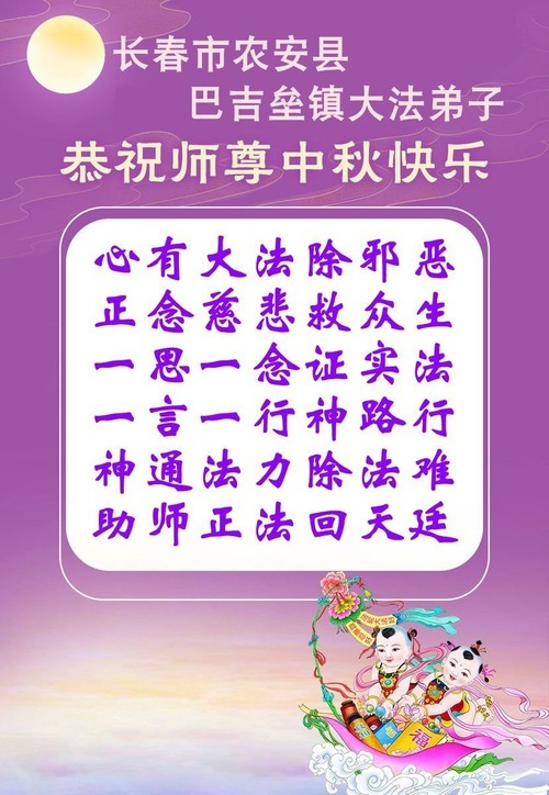 I praticanti della Falun Dafa della città di Changchun augurano al Venerato Maestro un felice Festival di Metà Autunno!