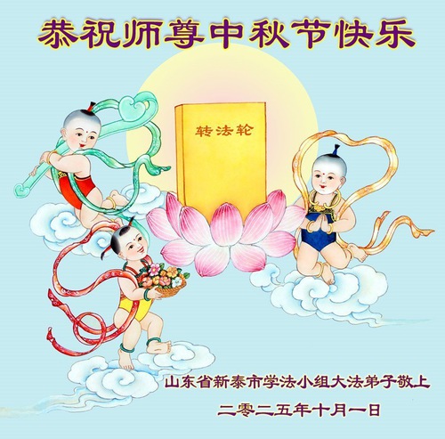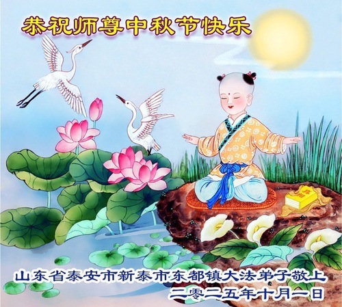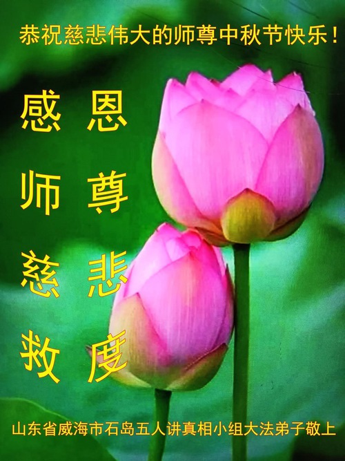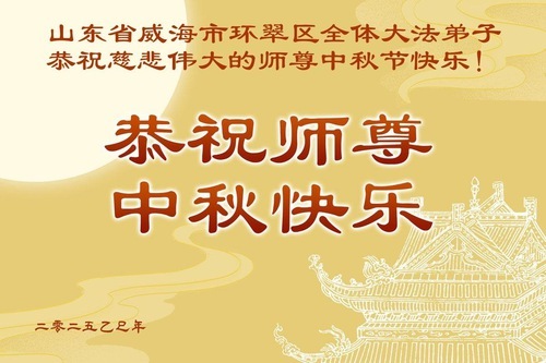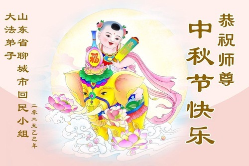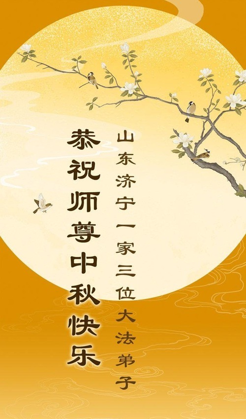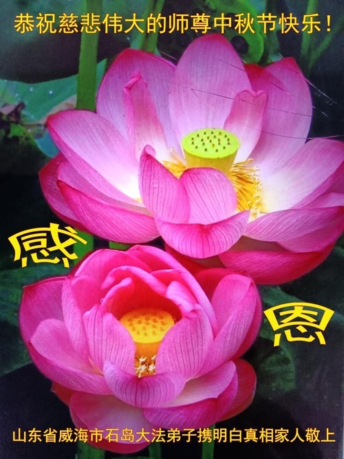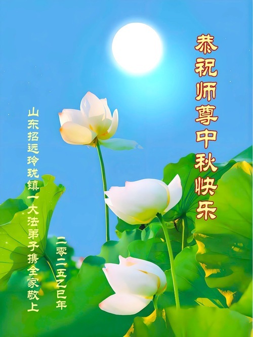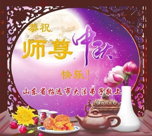 I praticanti della Falun Dafa di Laiwu, Liaocheng, Lianshan, e Weihai augurano al Venerato Maestro un felice Festival di Metà Autunno!