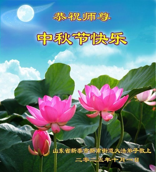 I praticanti della Falun Dafa delle città/aree di Yantai, Zoucheng, Tai’an, Jining, augurano al Venerato Maestro un felice Festival di Metà Autunno!