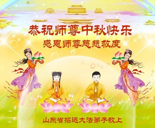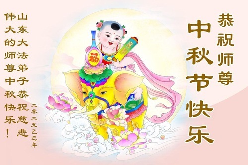I praticanti della Falun Dafa della provincia dello Shandong augurano rispettosamente al Maestro Li Hongzhi un felice Festival di metà autunno (109 auguri)