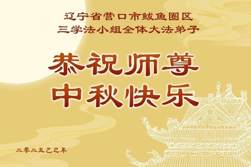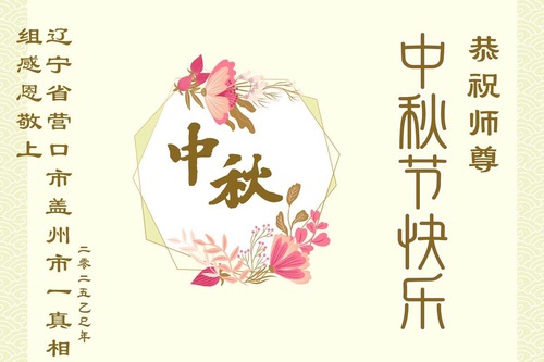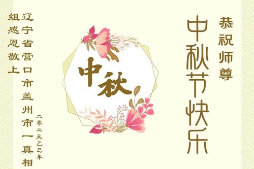 I praticanti della Falun Dafa delle città/aree del Dandong, Yingkou, Beizhen, e Xinbin, augurano al Venerato Maestro un felice Festival di Metà Autunno!