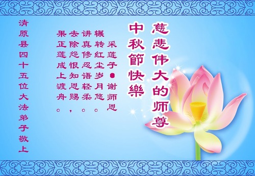 I praticanti della Falun Dafa della provincia del Liaoning augurano al Venerato Maestro un felice Festival di Metà Autunno!