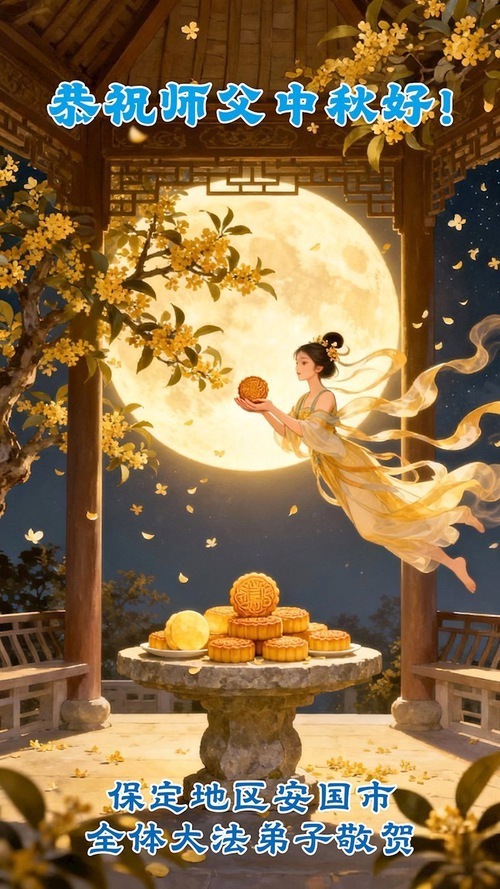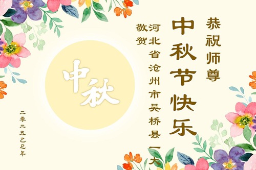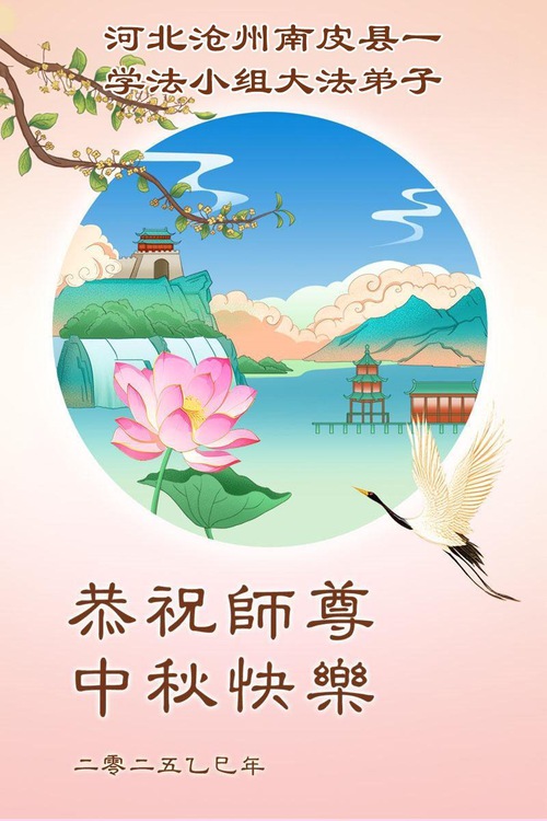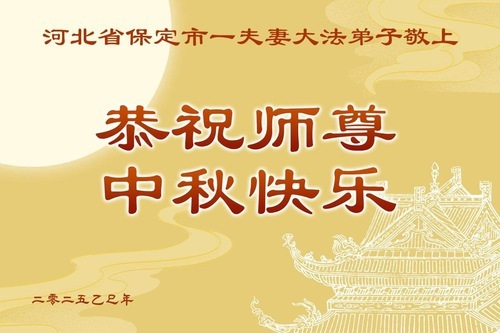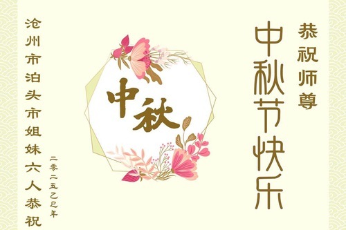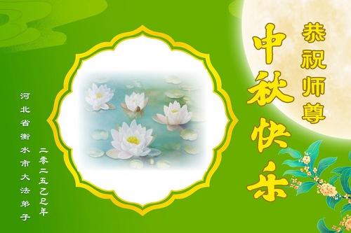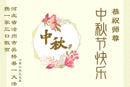 I praticanti della Falun Dafa delle città/aree di Cangzhou, Handan, Mancheng, Baoding, nella provincia dello Hebei, augurano al Venerato Maestro un felice Festival di Metà Autunno!