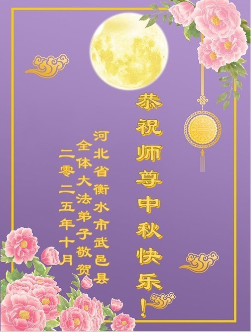 I praticanti della Falun Dafa delle città/aree di Cangzhou, Handan, Hengshui, nella provincia dello Hebei, augurano al Venerato Maestro un felice Festival di Metà Autunno!