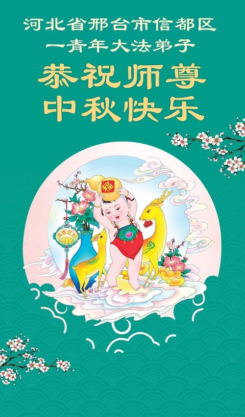 "Non pratico da molto tempo, ma ho potuto percepire i benefici sulla mia salute attraverso la pratica della Falun Dafa e al potere di Verità, Compassione e Tolleranza. Sarò sicuramente severo con me stesso, per essere una brava persona e una persona migliore. Grazie, Maestro Li, e Vi auguro una felice Festa di Metà Autunno!" ha scritto un giovane praticante della città di Tianmen, nella provincia dell’Hubei.
