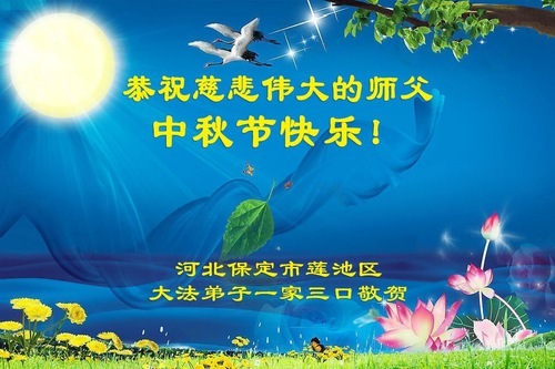 I praticanti della Falun Dafa della città di Baoding nella provincia dell'Hebei augurano al venerato Maestro una felice festa di metà autunno!