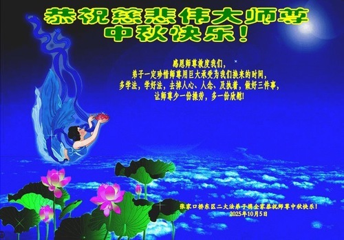 I praticanti della Falun Dafa della città di Zhangjiakou, nella provincia dell'Hebei, augurano al Venerato Maestro una felice festa di metà autunno!