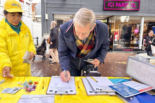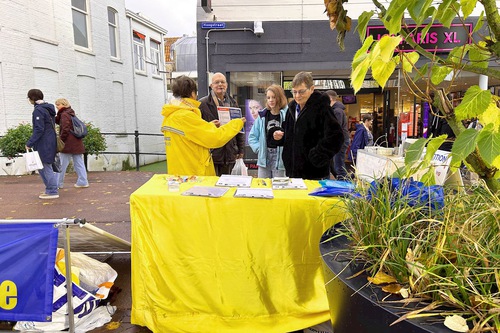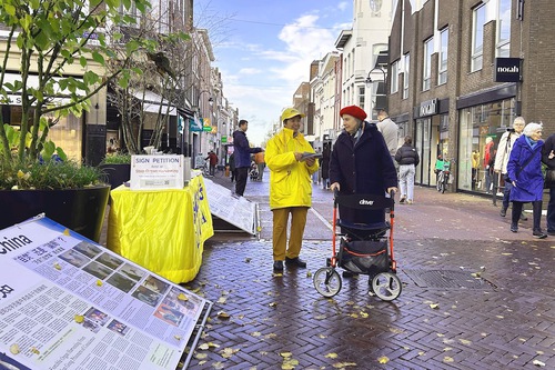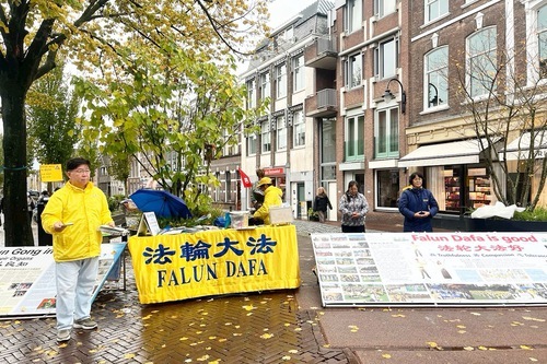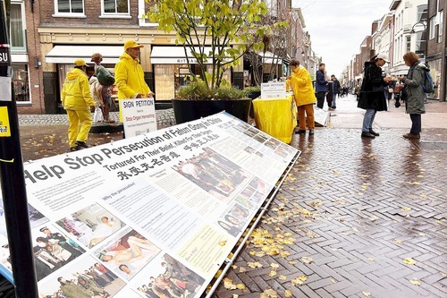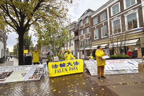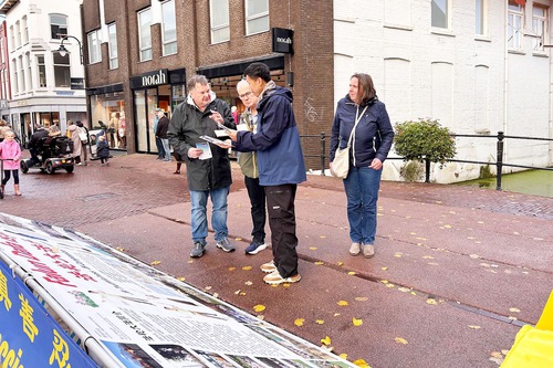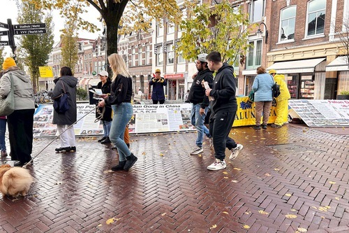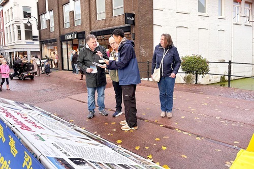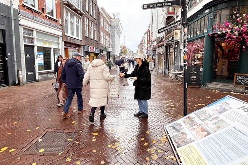 (Minghui.org) Lo scorso 1° novembre si è tenuta una giornata informativa sulla Falun Dafa a Gouda, nei Paesi Bassi. I praticanti hanno allestito dei cartelloni espositivi sul Turfmarkt, nel centro della città, mostrato gli esercizi, distribuito volantini, e informato le persone sulla persecuzione del Partito Comunista Cinese (PCC). Molti turisti hanno scoperto la Falun Dafa, e firmato la petizione che chiede la fine della persecuzione.